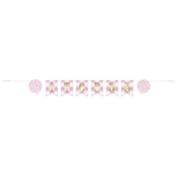 DECOR - 1st BIRTHDAY PINK GINGHAM - FOIL BANNER 12'