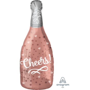 18" FOIL - CHEERS CHAMPAGNE BOTTLE ROSE JUNIOR SHAPE